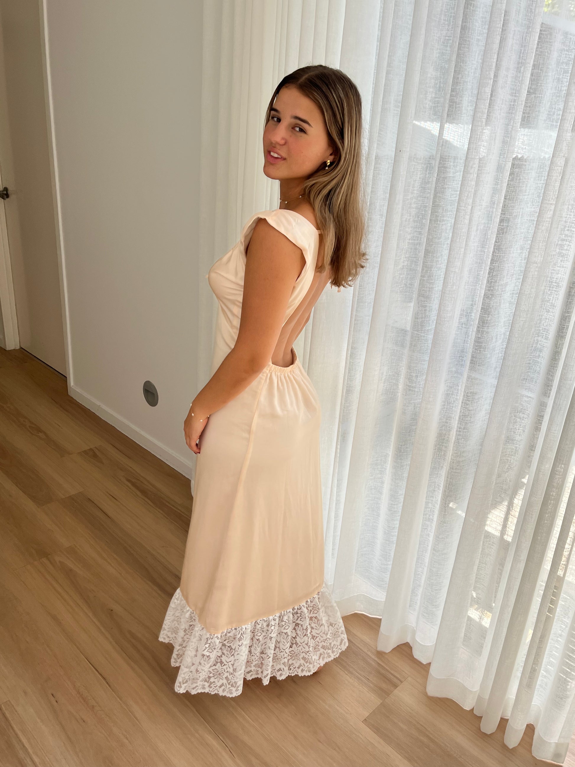Maxi straight fitting dress, that cinches at the waist and skims the hips